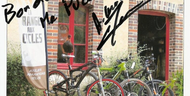 « Bon choix ma Puce » a dédicacé Anne Caroline Chausson ambassadrice d’IBIS, à la poule mascotte de la Grange aux Cycles 😛